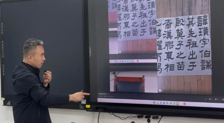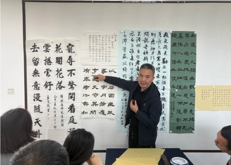 教学中,罗小平从毛笔书法的发展历史,纸张和毛笔的选用、初学字帖选择、行书临帖的技巧等方面进行了深入浅出、通俗易懂的讲解。并现场进行临贴示范,给大家展示书写技巧。最后对听课学员的20余幅作品进行了逐一点评,还同现场和线上的多名学员进行密切互动,解答学习中的疑虑和困惑,为大家指明了改进和努力的方向。