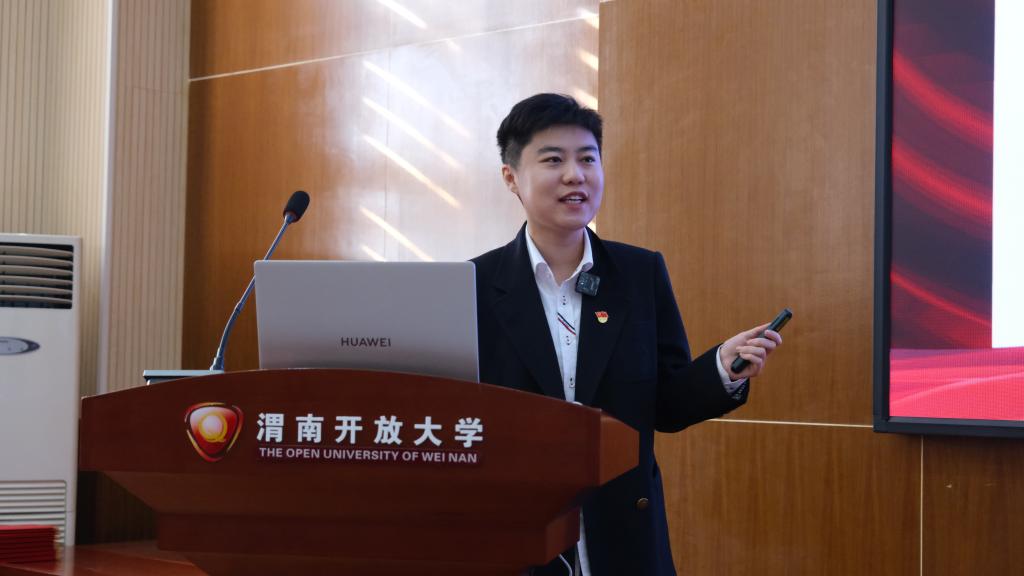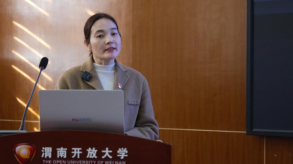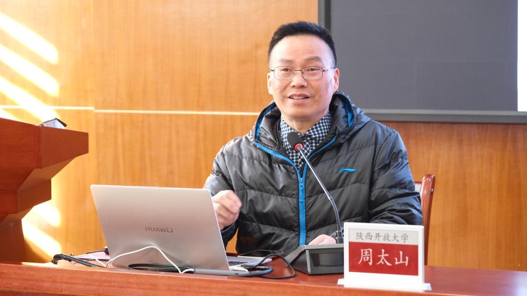 王锋作了题为《开放大学“价值引领 数智赋能 全域协同”三维全要素思政课改革创新与实践》的工作报告,他从开放大学为什么要进行思政课教学改革;陕西开放大学如何推动思政课教学改革等四个方面讲解了思政课改革创新与建设的具体做法。